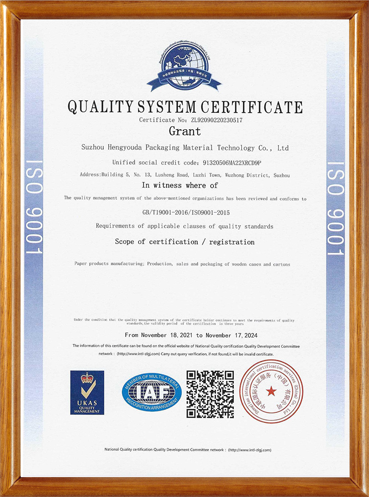 蘇州恒優(yōu)達(dá)包裝材料科技有限公司位于蘇州吳中區(qū)甪直古鎮(zhèn),靠近滬寧高速、滬寧鐵路,靠近昆山,上海,蘇州工業(yè)園區(qū)等,交通十分便捷。公司占地面積1500平方米,擁有員工18余人,其中專業(yè)技術(shù)人員10名。我公司是一家專業(yè)生產(chǎn)包材:瓦楞紙板、紙箱、紙托盤(pán)、木箱、木托盤(pán)、泡棉的企業(yè)。